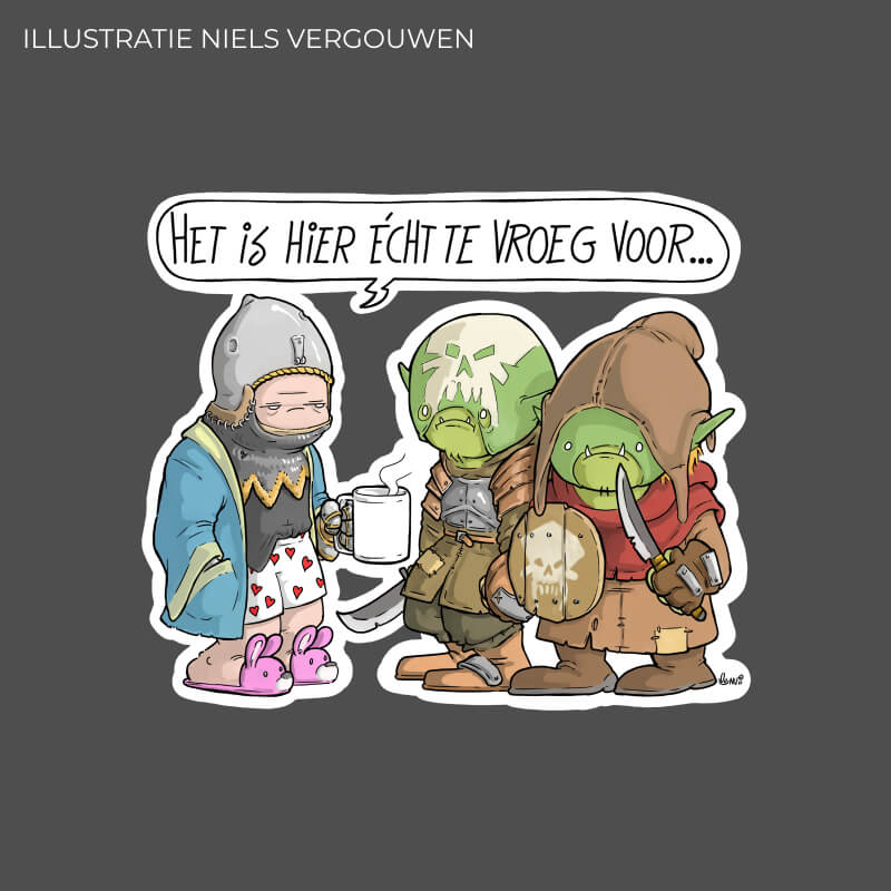 Nederlandse larp illustrator Niels Vergouwen van CouldBeWorse Comic heeft speciaal voor het LARP Platform de “Het is hier écht te vroeg voor” tekening gemaakt.